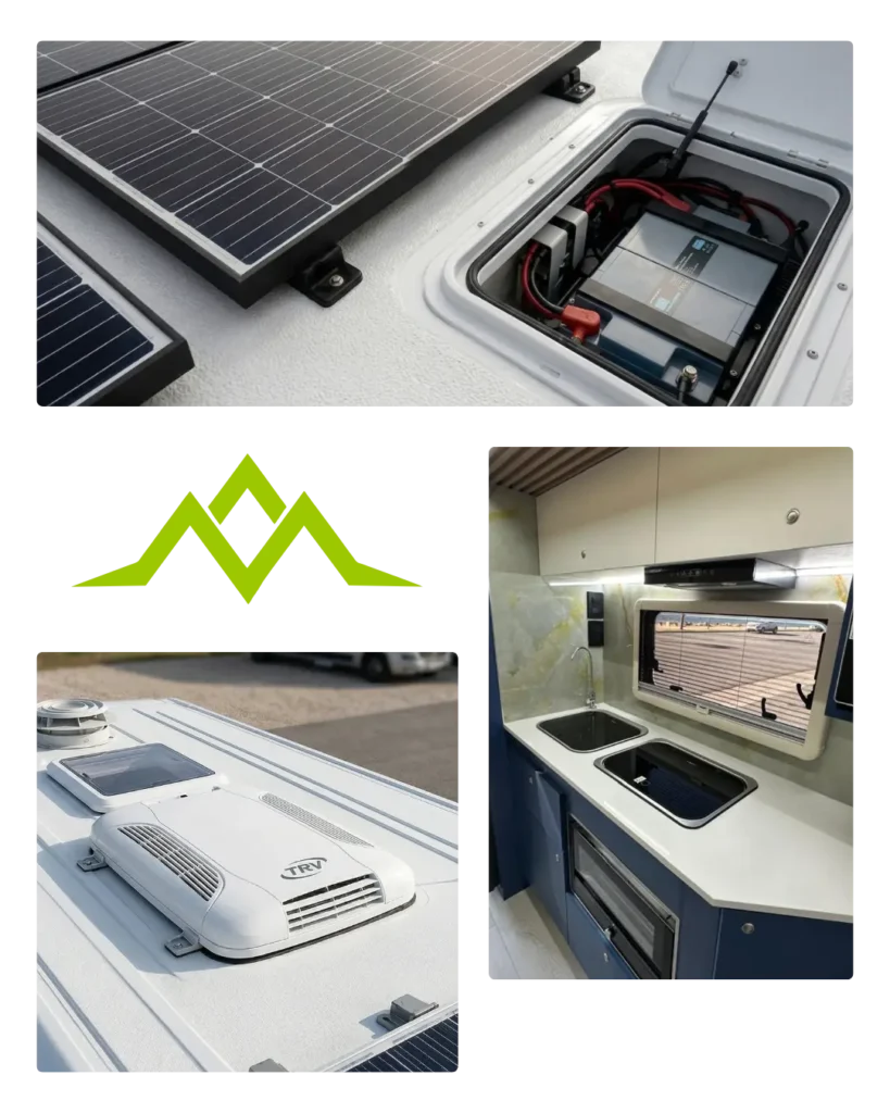 Upgrades de Confort: Renovación completa de cocinas y baños, sistemas de agua y electrodomésticos Dometic.